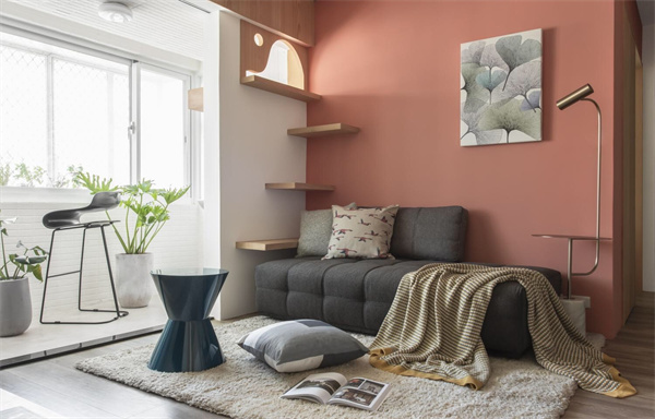 而粉色墻壁作為點(diǎn)綴,為客廳注入了一絲柔和的色彩,既溫暖又不失清新。墻上掛著北歐風(fēng)格的裝飾畫與壁飾,與整體裝修風(fēng)格相得益彰,展現(xiàn)出簡約而不簡單的美感。