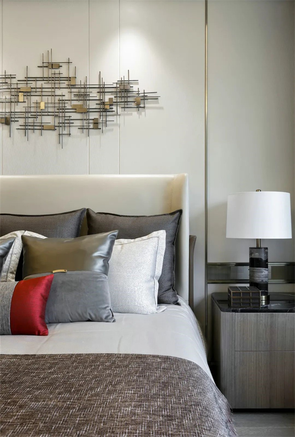傳統(tǒng)的中式元素與現(xiàn)代的簡約設(shè)計(jì)完美結(jié)合,呈現(xiàn)出典雅與舒適的空間氛圍。床頭背景設(shè)計(jì)了一幅大型藝術(shù)背景裝飾,為整個(gè)房間增添了一份藝術(shù)氣息。大窗戶讓自然光線充盈房間,這樣的主臥空間,不僅是休憩的港灣,更是文化與現(xiàn)代生活的完美融合。