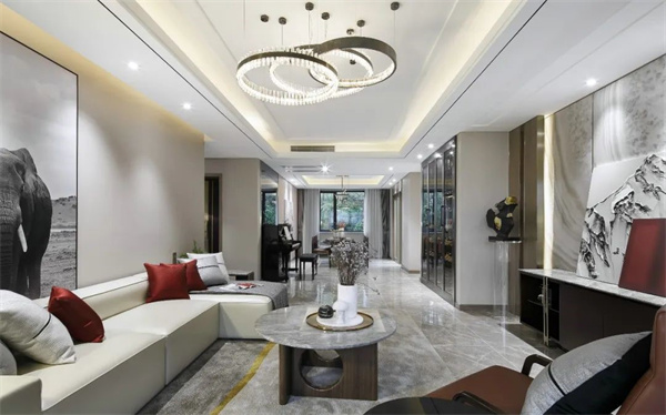 同時(shí),客廳中巧妙融入了現(xiàn)代元素。簡約現(xiàn)代的燈飾和軟裝配飾,讓整個(gè)空間更加舒適和實(shí)用,也使整個(gè)客廳散發(fā)著溫暖宜人的氛圍。