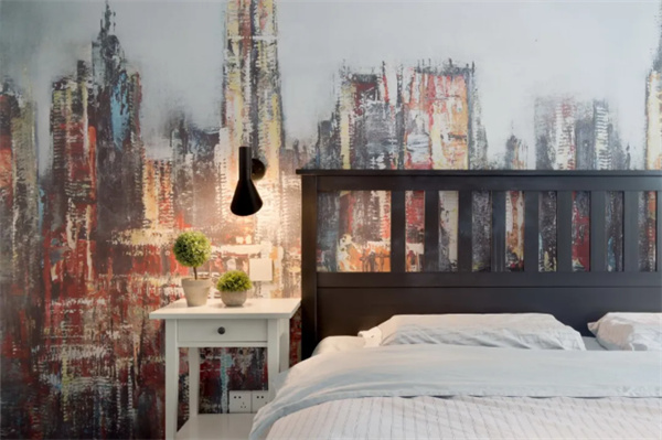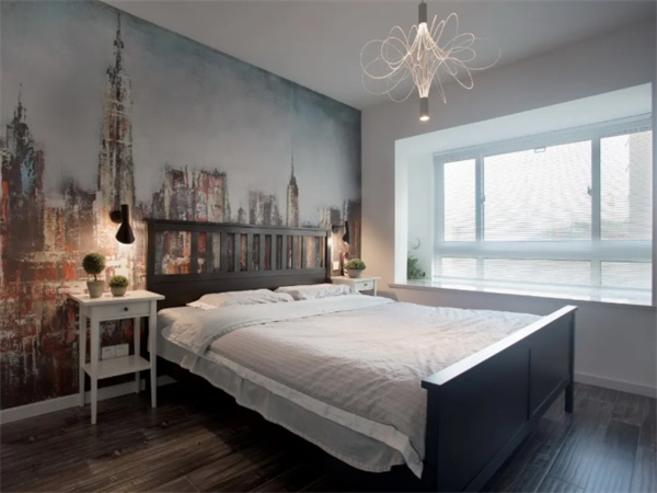 主臥室以白色墻面為主,床頭背景墻繪制大幅藝術(shù)畫(huà),為空間增添藝術(shù)氣息。大窗戶(hù)帶來(lái)了足夠的自然光線(xiàn),使臥室更加明亮。簡(jiǎn)約的原木床加上深色地板與白色飄窗臺(tái),簡(jiǎn)簡(jiǎn)單單的空間,充滿(mǎn)了輕松與自然的質(zhì)感。
