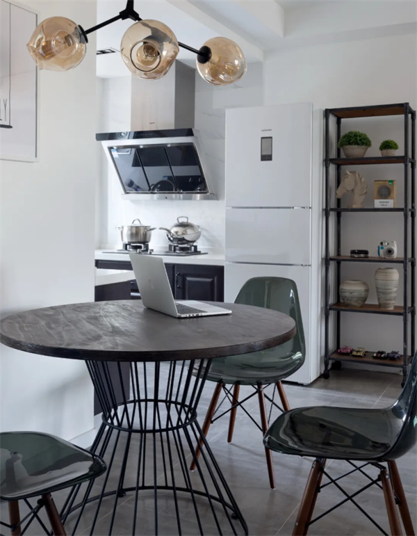 廚房臨窗而設(shè),讓整個(gè)廚房保持明亮干爽的空間,以白色大理石紋理墻磚+灰色地磚組合,結(jié)合深色定制櫥柜,在U型的操作臺(tái)下,裝扮出了一個(gè)舒適時(shí)尚的烹飪空間。