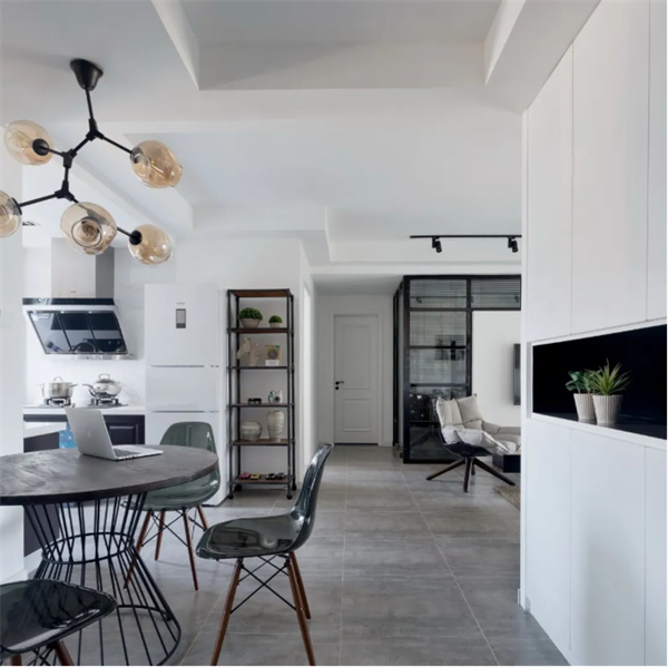 本案以灰色地磚和白色墻面為主要色調(diào),創(chuàng)造了一個(gè)清新、溫馨的居住空間。此外,綠植、藤編等大自然的元素也被用來(lái)裝飾室內(nèi)空間,讓整個(gè)家更加貼近自然,呈現(xiàn)出一個(gè)治愈系之家的感覺(jué)。
