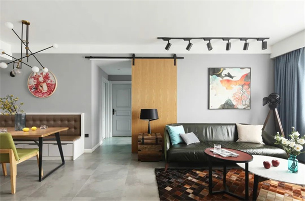 客廳,以柔和的色調(diào)做主基調(diào),深色皮藝沙發(fā)散發(fā)著低調(diào)的優(yōu)雅,搭配天然原木材質(zhì)的茶幾,呈現(xiàn)出貼近自然的純凈氣息。綠植點綴于窗邊與角落,為空間注入生機與活力,宛如置身鄉(xiāng)間的寧靜綠洲。