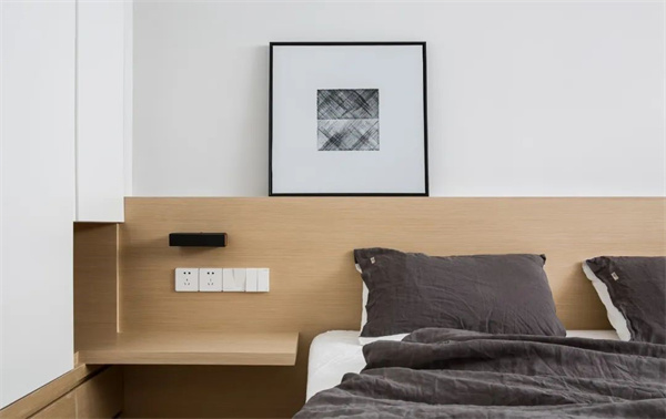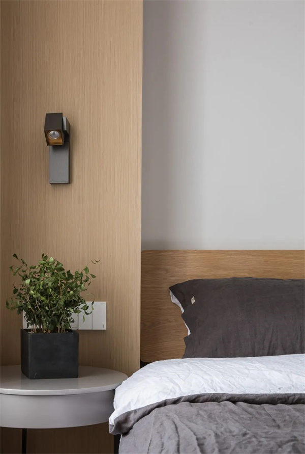 次臥中,白色墻面與原木色床頭的組合,呈現(xiàn)清新自然的氛圍。簡(jiǎn)約而實(shí)用的家具布局,使空間更加通透和整潔,加上柔和的燈光設(shè)計(jì),讓居住者盡情享受寧?kù)o與舒適。