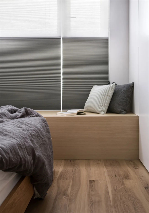 主臥空間以原木地板為基調(diào),搭配白色墻面與灰自組合的床品,打造出簡(jiǎn)約而不失品位的氛圍。選擇原木飾面的家具,與整體設(shè)計(jì)風(fēng)格保持一致,讓主臥成為一個(gè)寧?kù)o而舒適的私人空間。