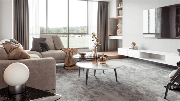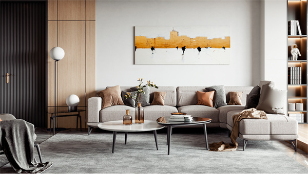 客廳的設計注重舒適和開放感,白色墻壁和中性色調(diào)的地板創(chuàng)造了明亮的背景,大窗戶保了足夠的自然光線。舒適的沙發(fā)、柔軟的地毯和靠枕提供了宜人的休息空間,墻上掛著一些抽象藝術品,為空間增加現(xiàn)代感。