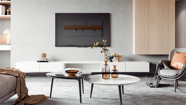 電視背景墻則是以極簡的灰白色進行搭配。定制整面的收納柜,擁有更多的收納空間,摒棄繁雜多余的裝飾品和色彩,創(chuàng)造出通透開闊的感覺,讓視野得到解放,整個空間顯得干凈、簡潔。