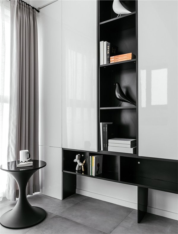 本案設(shè)計(jì)師通過簡(jiǎn)潔的線條、純凈的色彩以及精致的家具選擇,打造出一個(gè)既時(shí)尚又實(shí)用的居住空間。黑、白和灰的中性色調(diào)成為主宰整個(gè)裝修的基調(diào),打造出一種干凈、明亮、寬敞的氛圍。