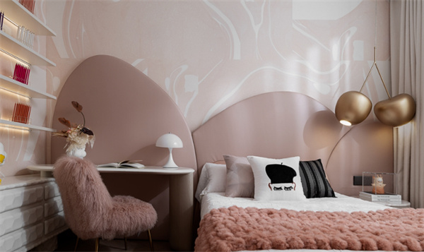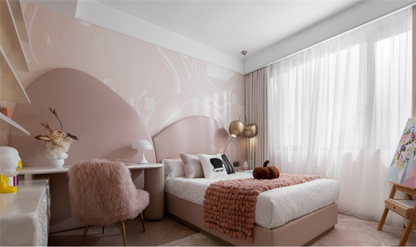 兒童房白色頂面搭配著粉色墻畫,可愛的圖案和色彩讓整個房間充滿童趣和活力。粉色地毯和墻畫相互襯托,呈現(xiàn)出優(yōu)雅而不失童真的感覺。可愛風格的玩具和裝飾品,打造出充滿童趣和驚喜的成長空間。