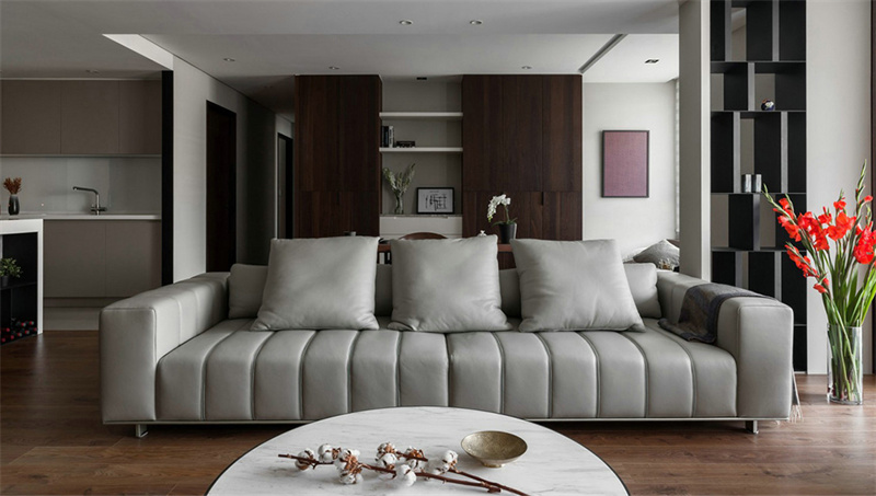 本案裝修以潔凈的灰白色為主,適當加入原木質(zhì)感的元素,營造出一種自然大方的空間氛圍。布置上簡約舒適的家具、精致的軟裝細節(jié),使得居家空間充滿愜意輕松的感覺。